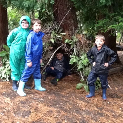 In Forest School today, Rainbows were thinking about 'Little Red Riding Hood'. They used clay and natural materials to make characters from the story.