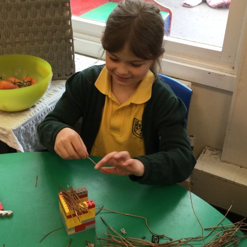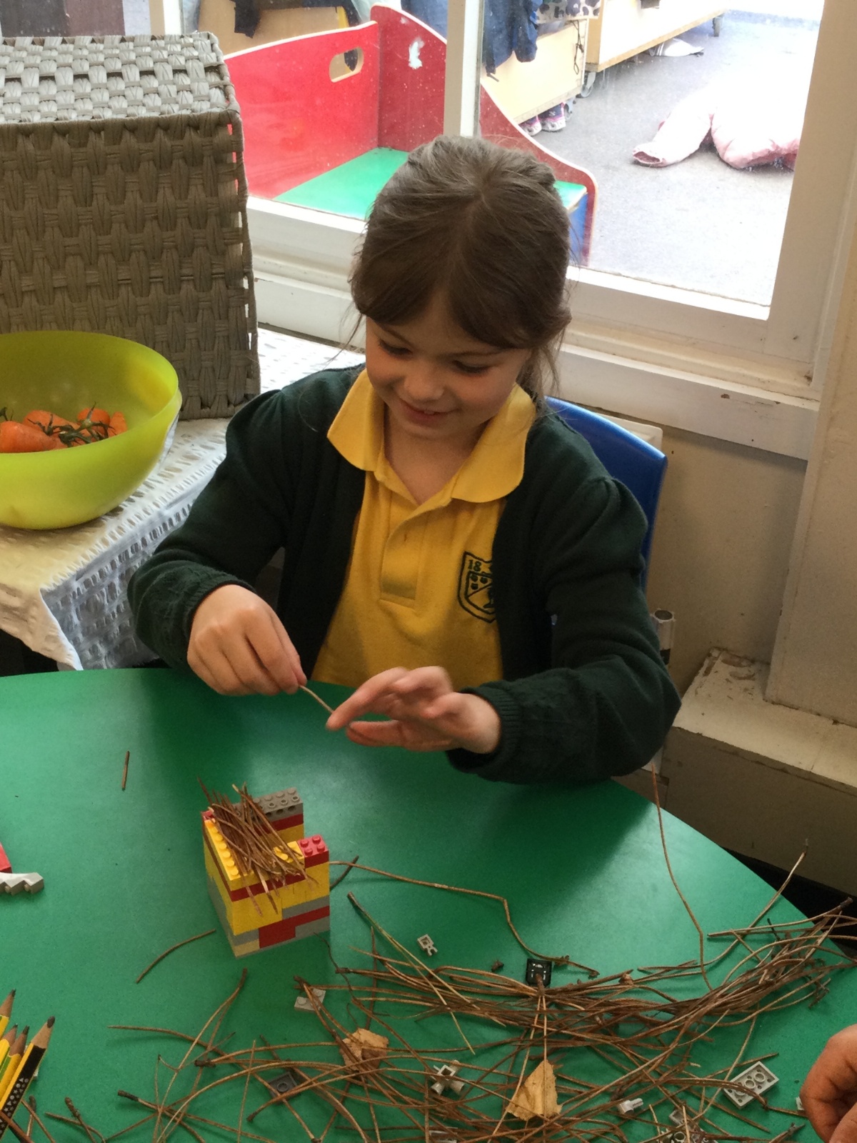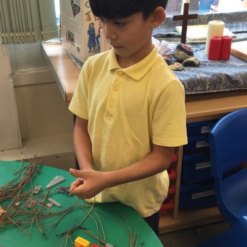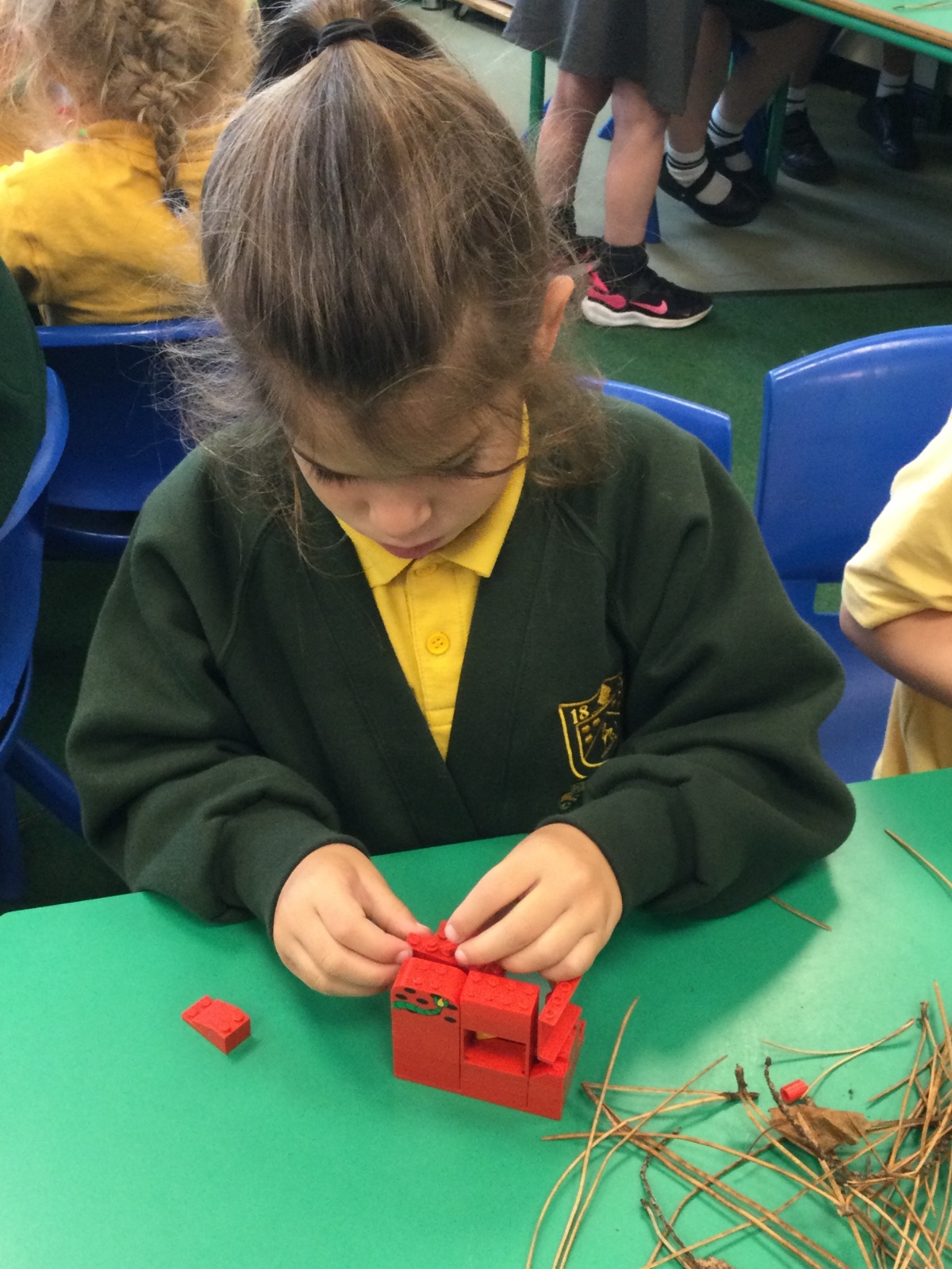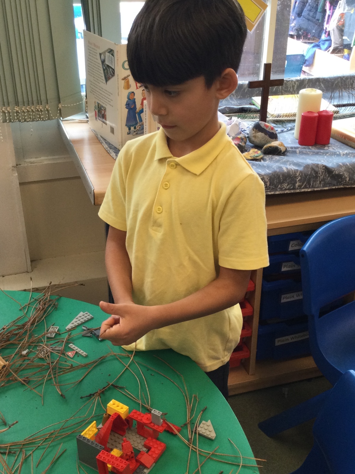 Apple Class used lego and natural materials to make a Sukkah. They made sure the Sukkah had 3 walls and a natural roof. A Sukkah is a special building that Jewish people make during the festival of Sukkot. They make it to remember their ancestors and to say thank you to God for his security and protection.