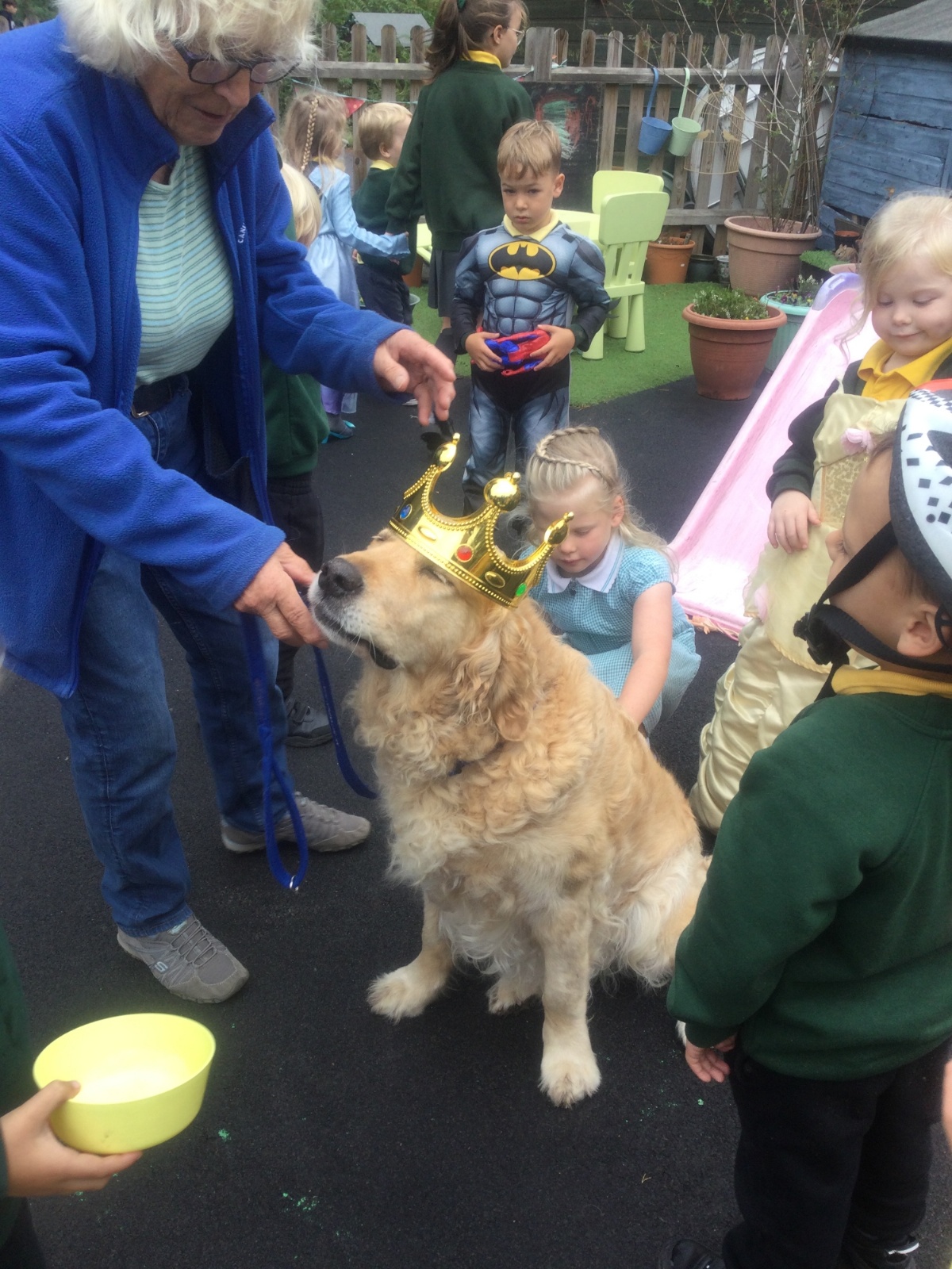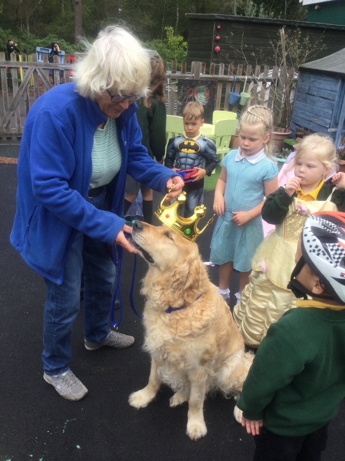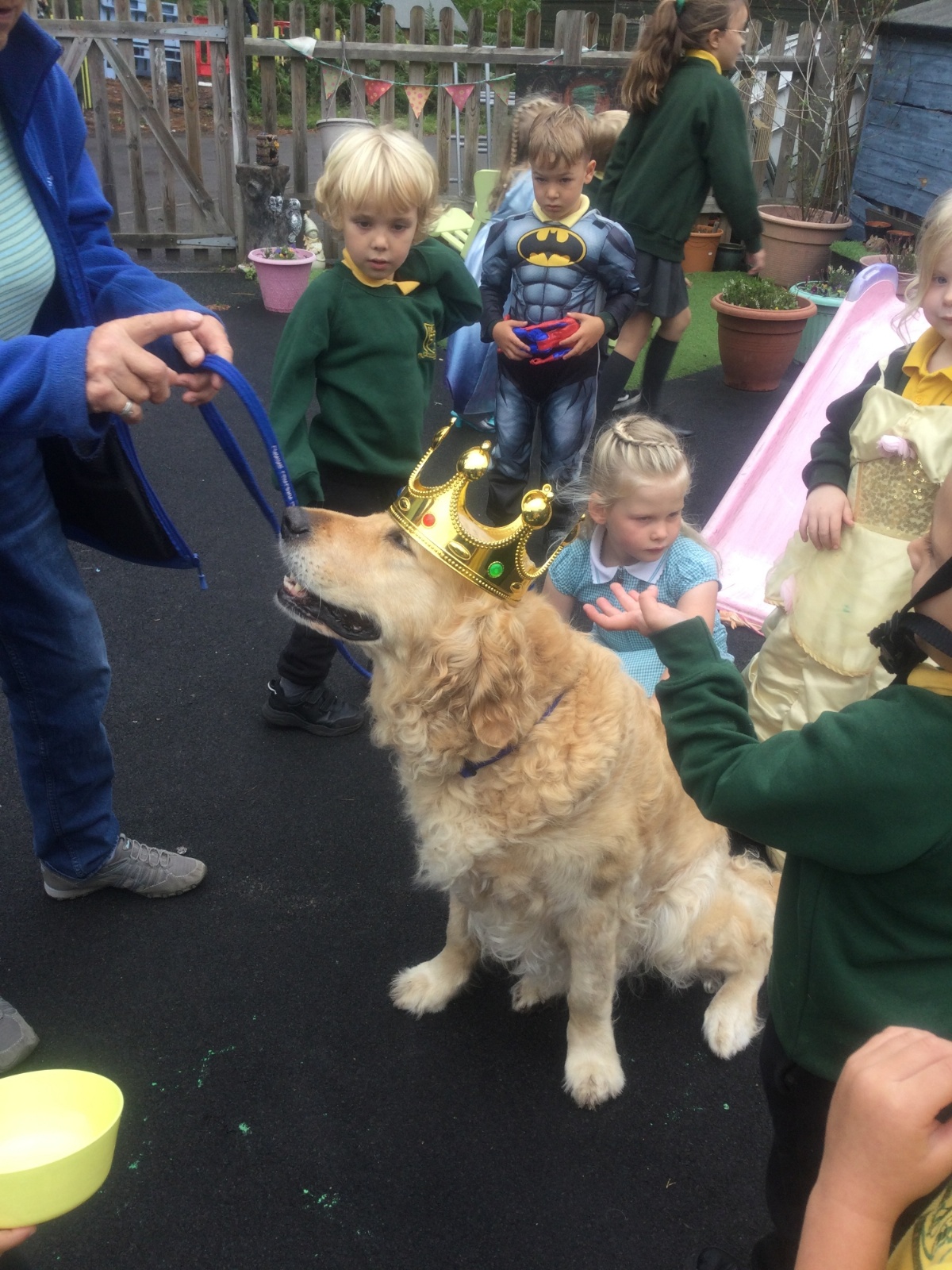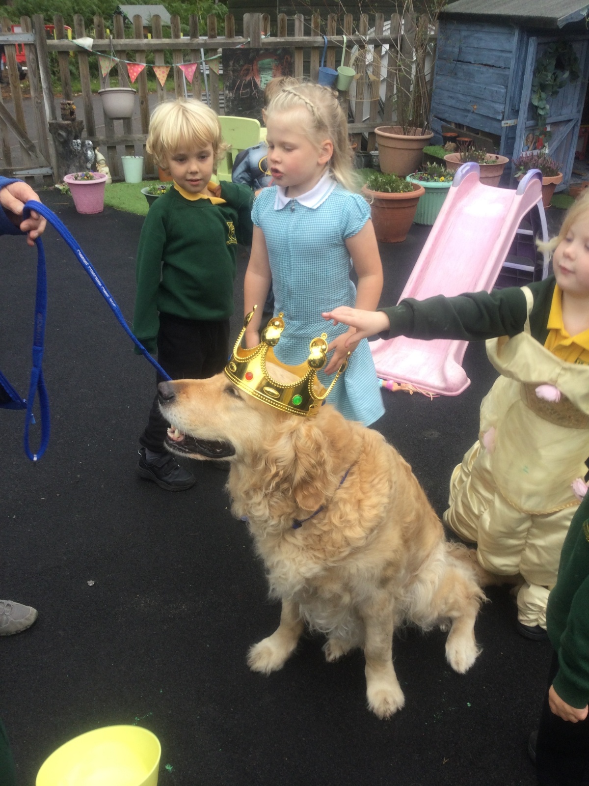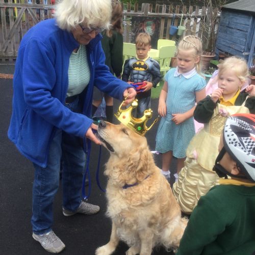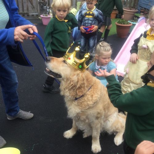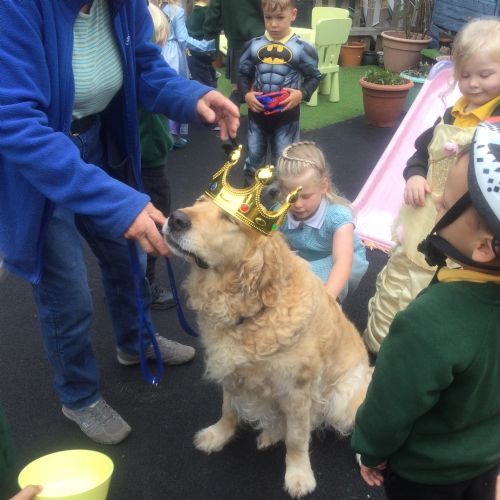 Fenn, our reading dog, came into school to help the children learn how to read and was crowned King Fenn.