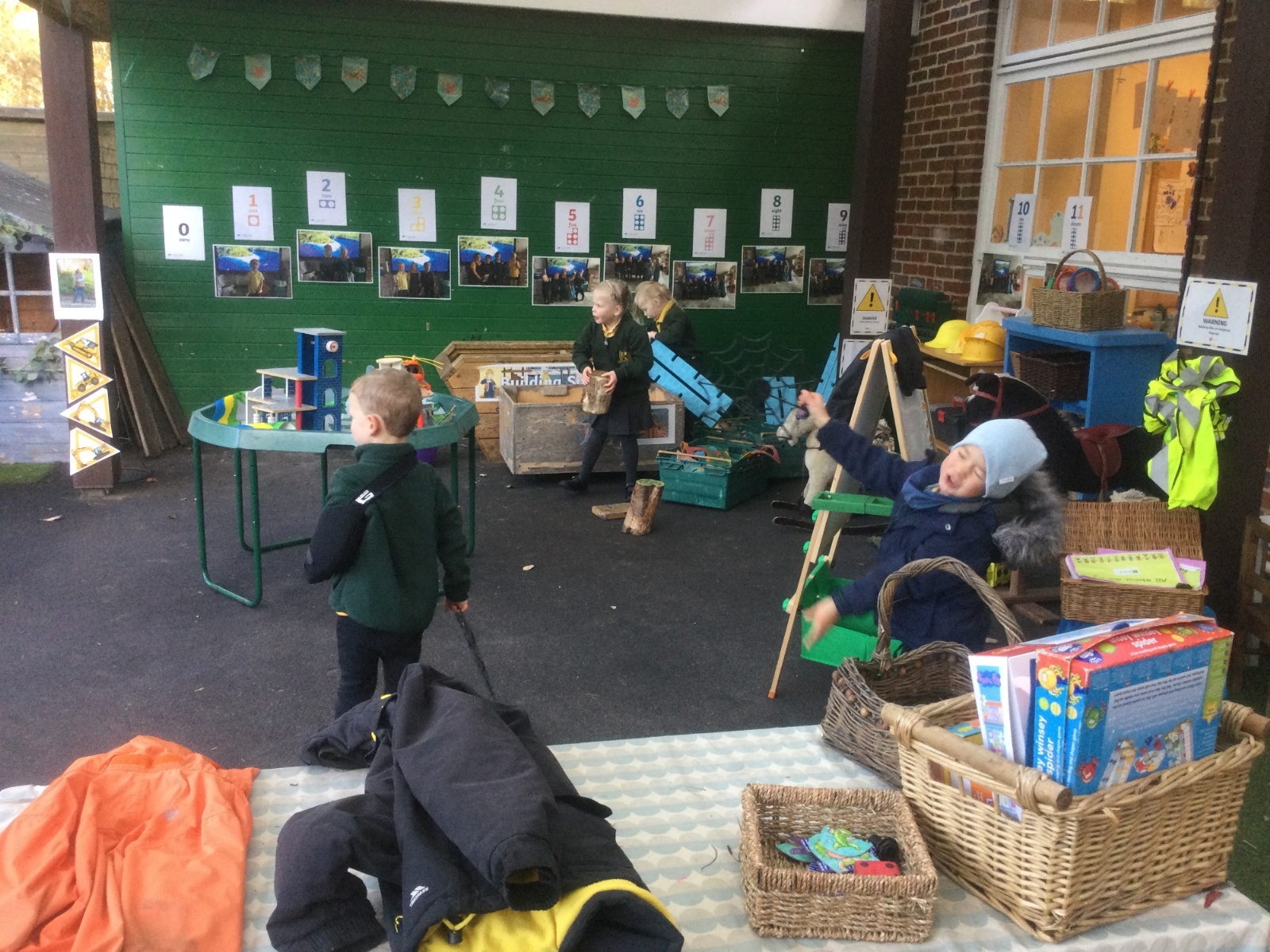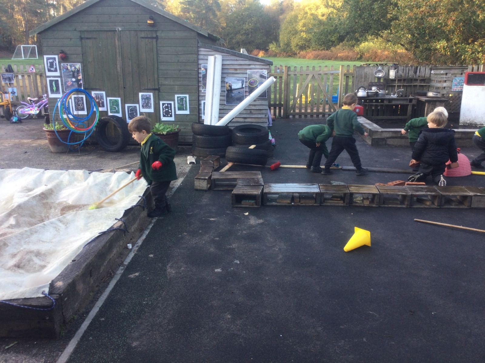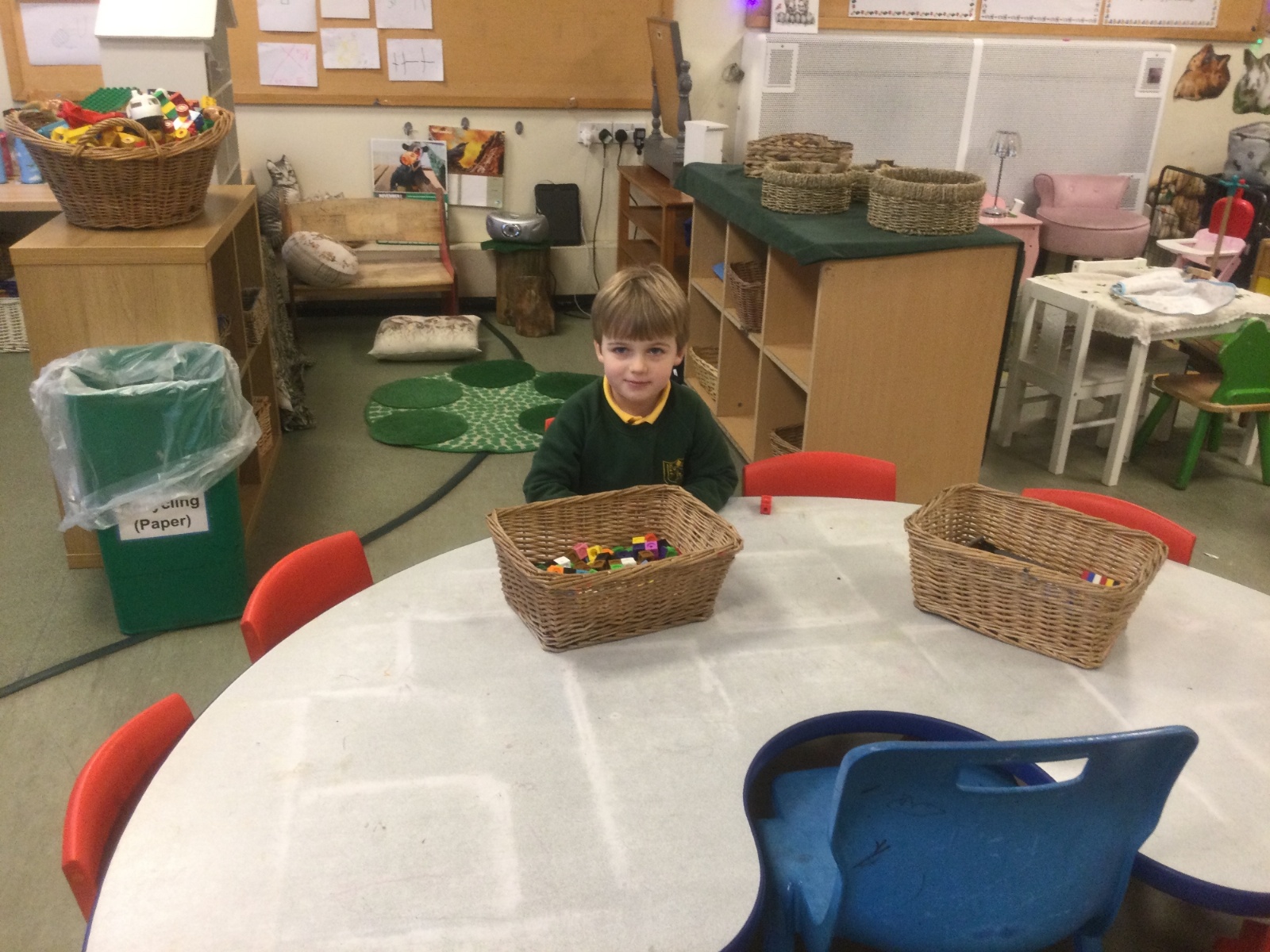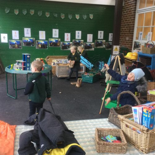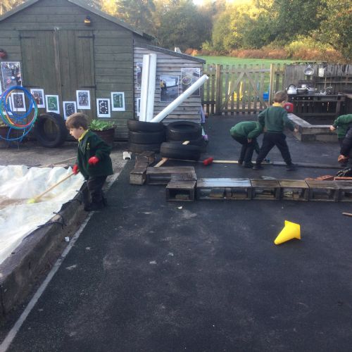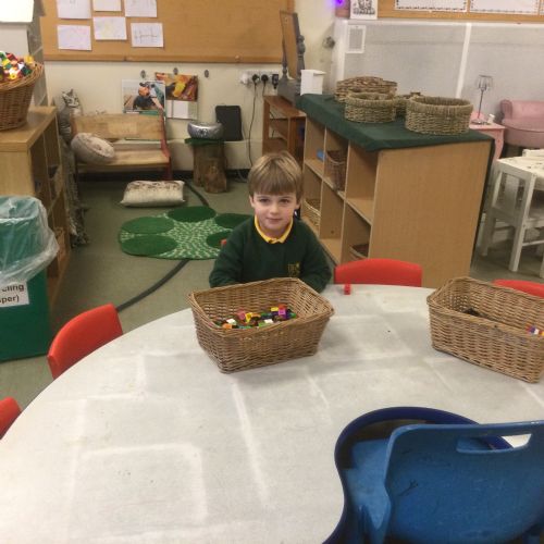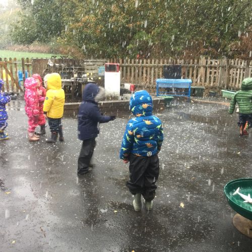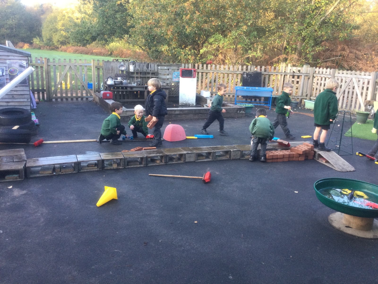 Acorns were very busy in the week that we had our first snow shower. The photographs show them making a variety of models and obstacle courses using mathematical vocabulary such as long, short, 1 more and 1 less.
