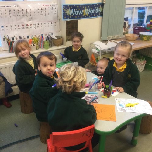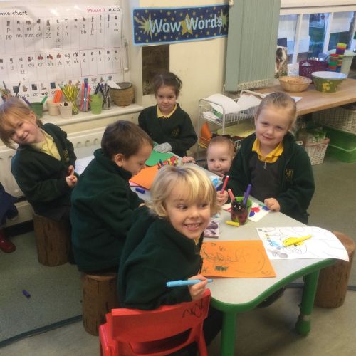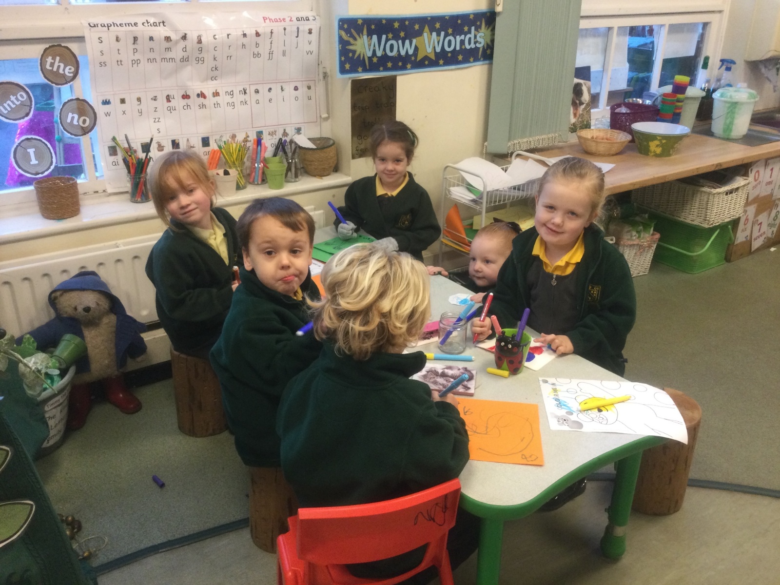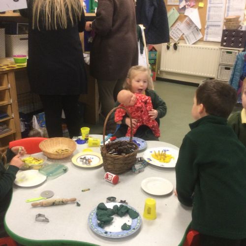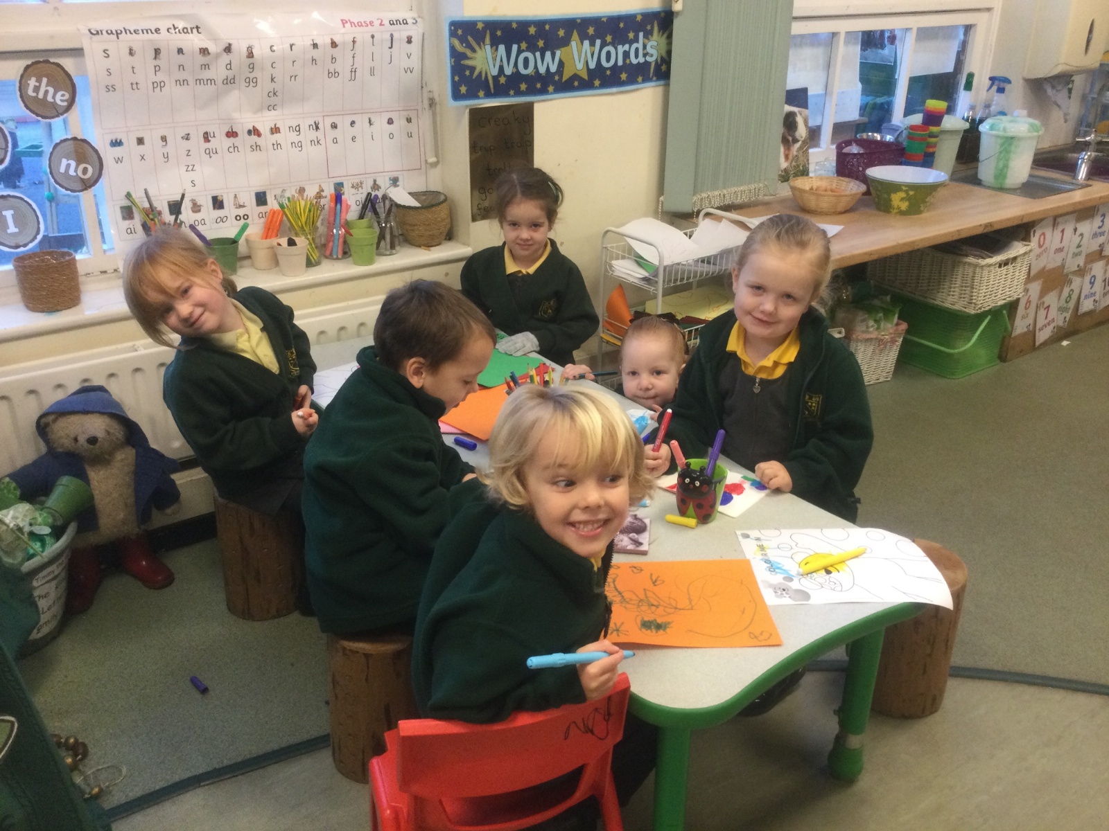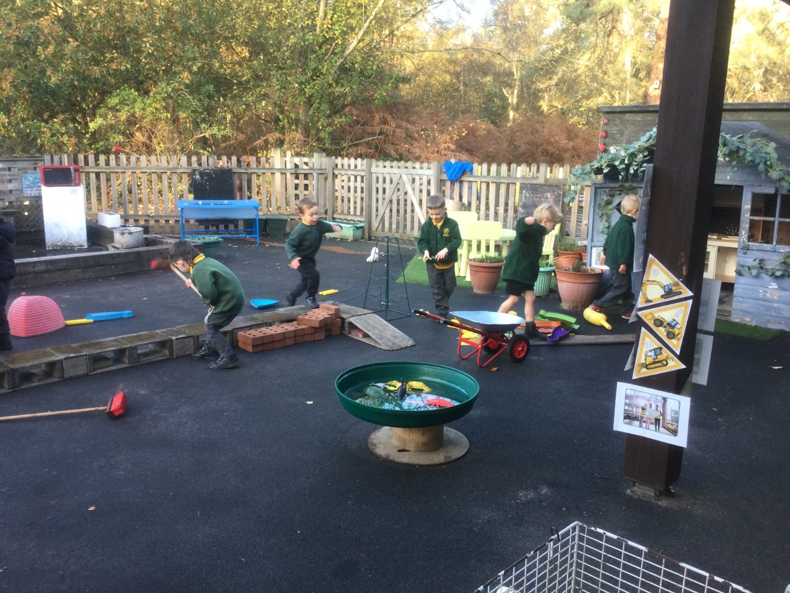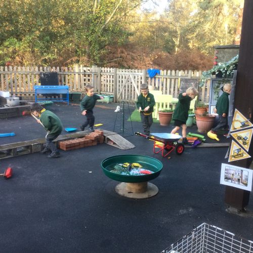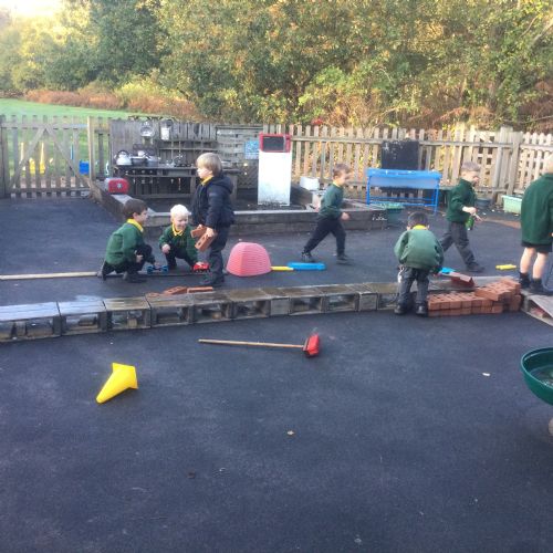 Acorns were very busy in the week that we had our first snow shower. The photographs show them making a variety of models and obstacle courses using mathematical vocabulary such as long, short, 1 more and 1 less.
