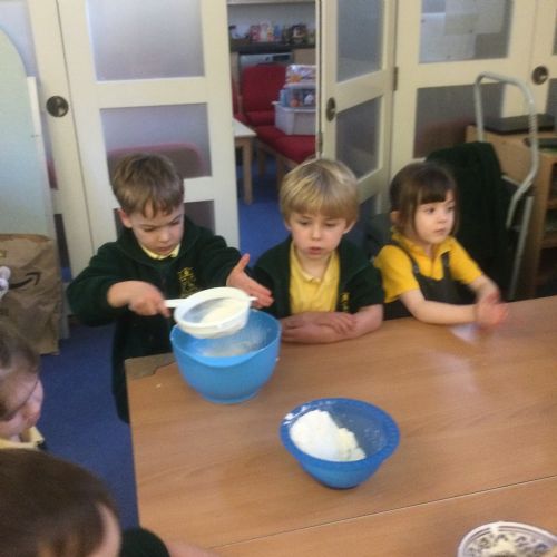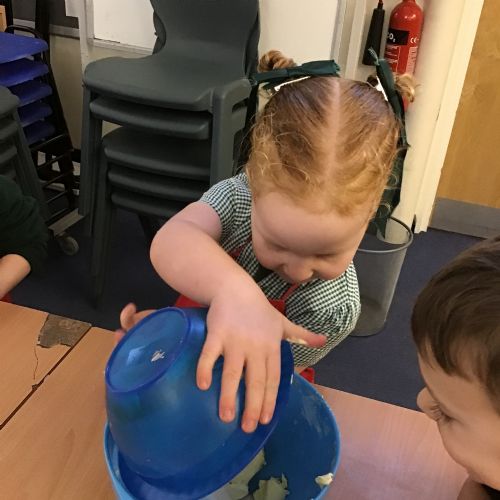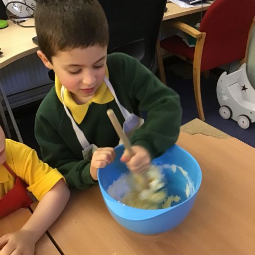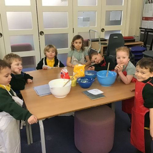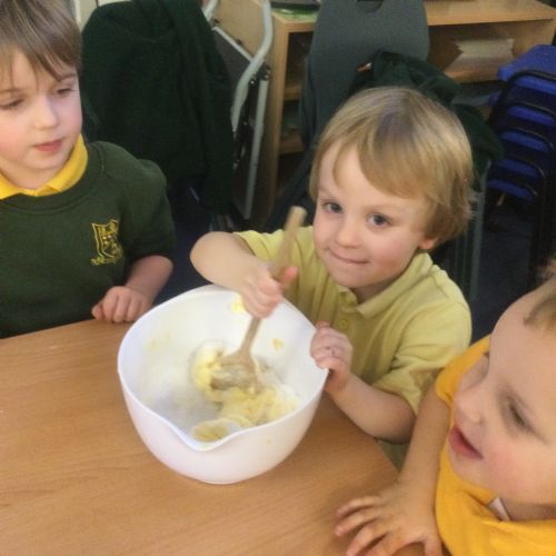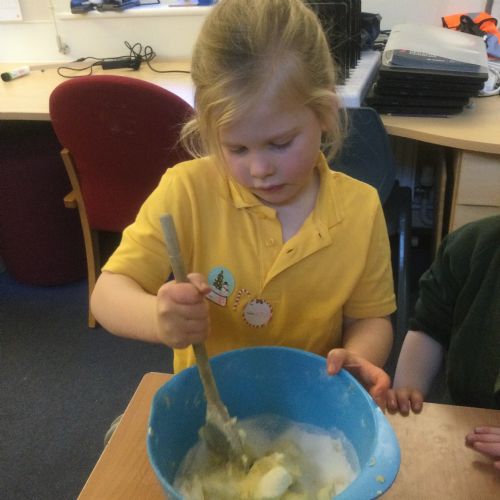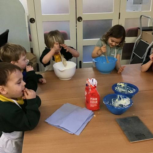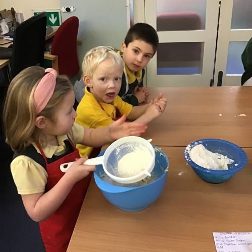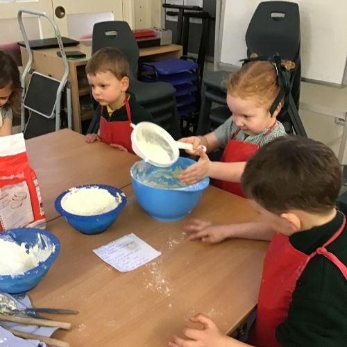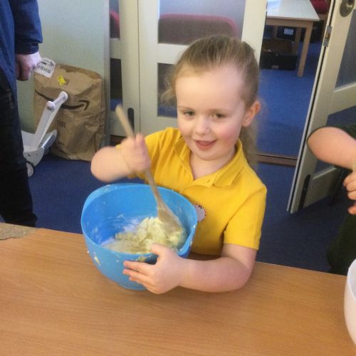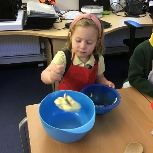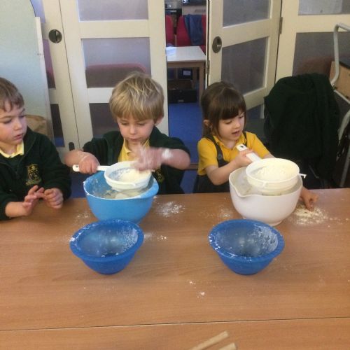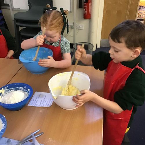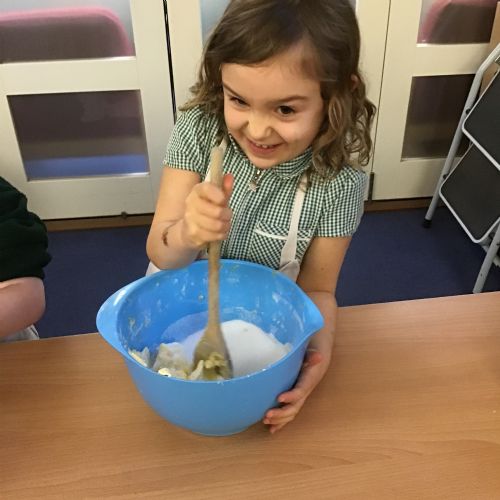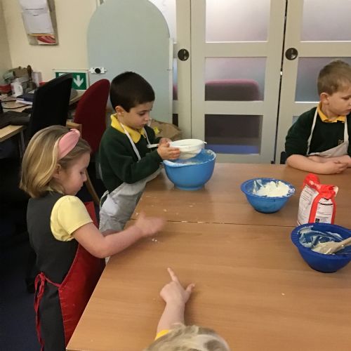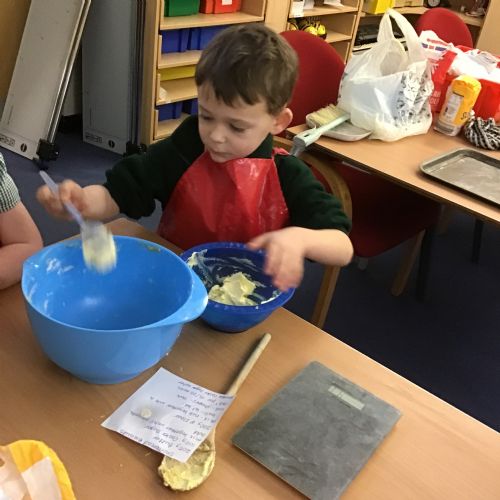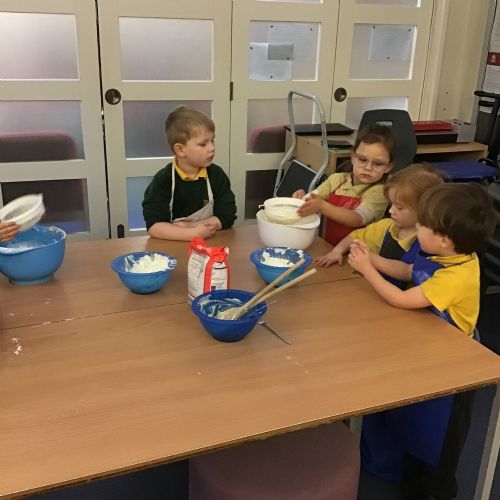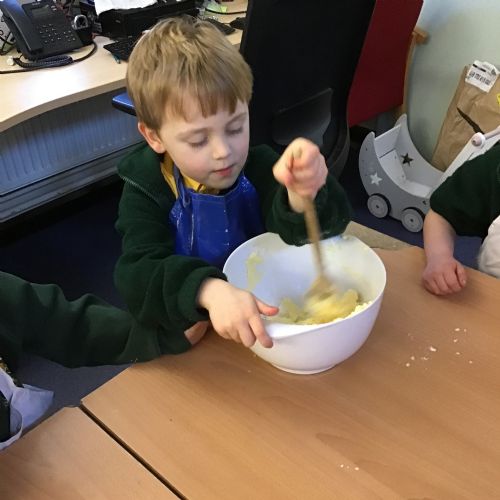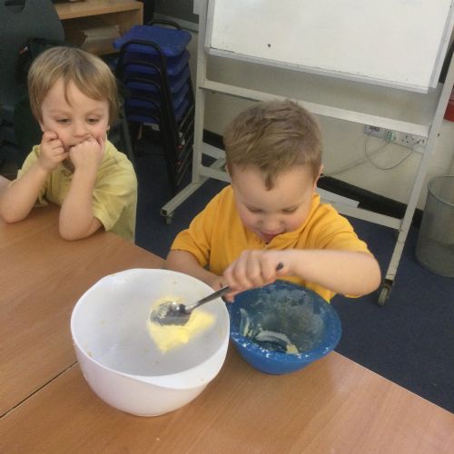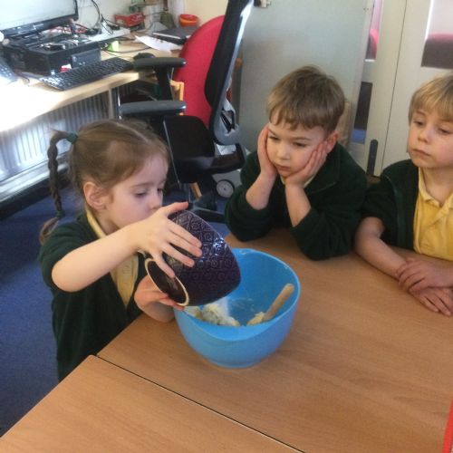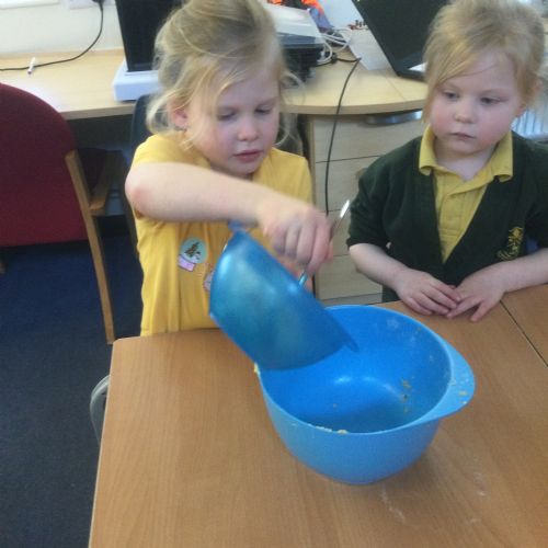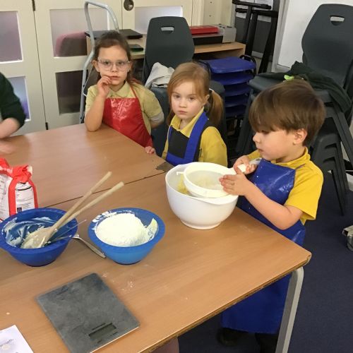 The children in Acorns thoroughly enjoyed cooking with Miss Simpkin. They did this in small groups so that key mathematical language could be used. They talked about full, empty, numbers and shapes.