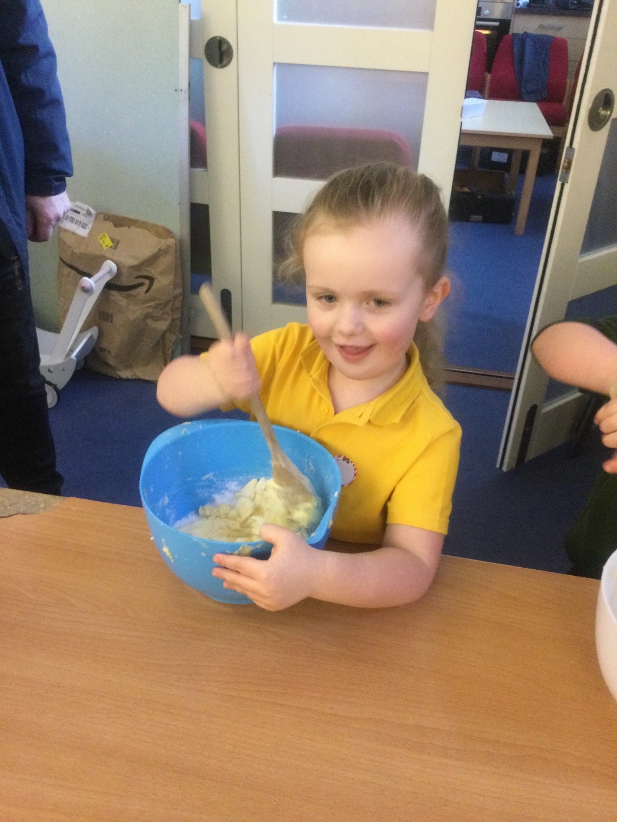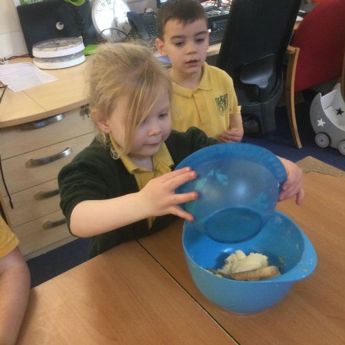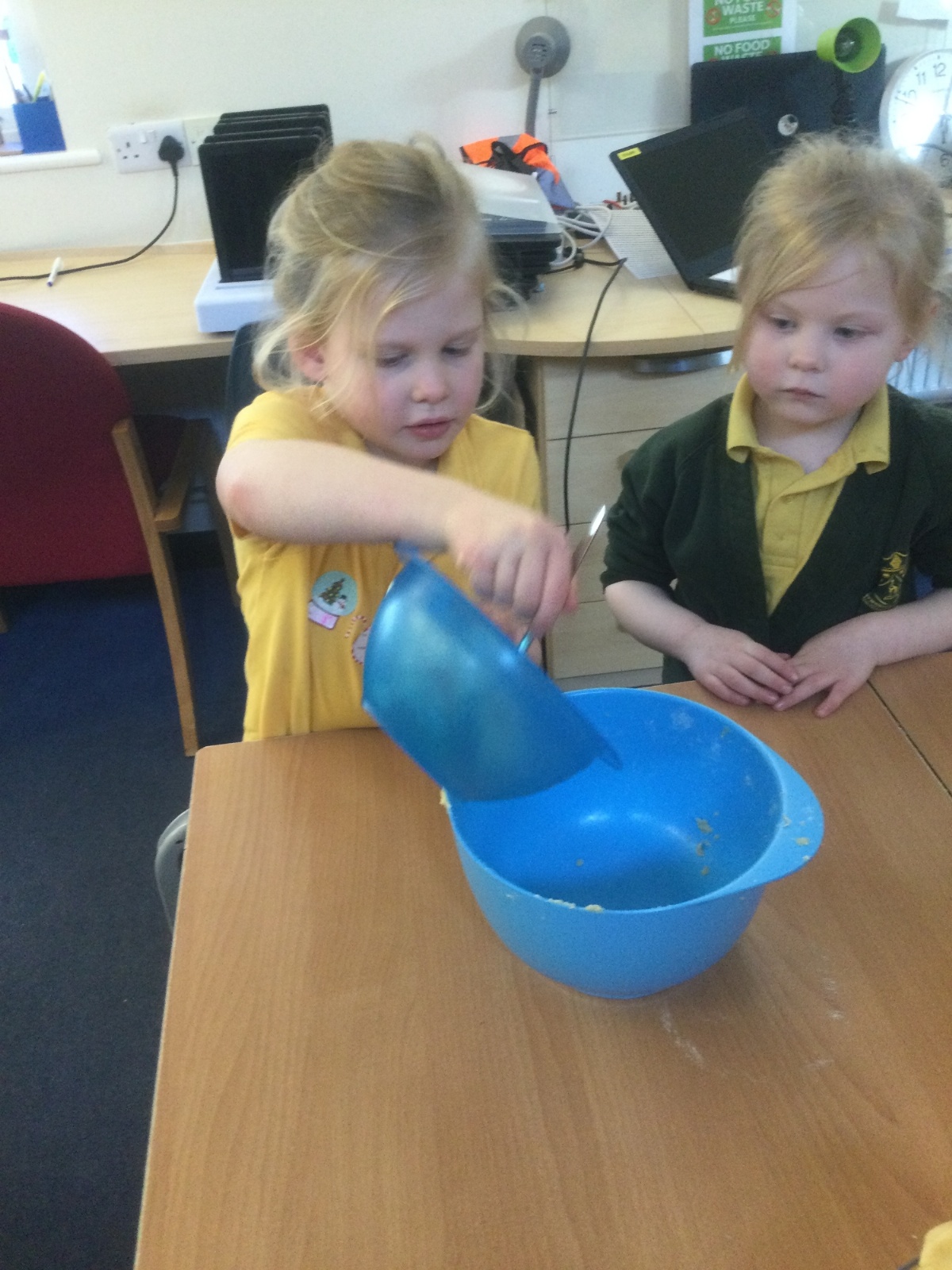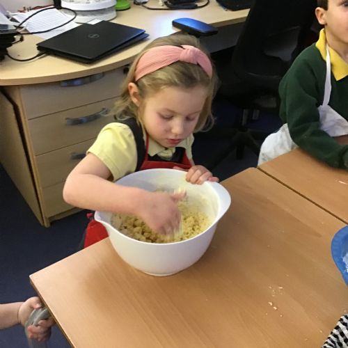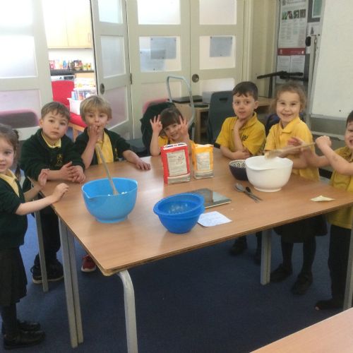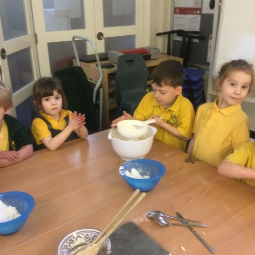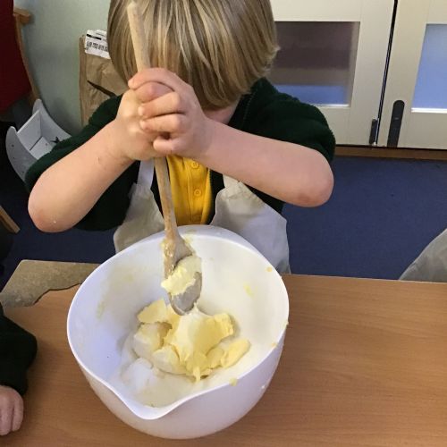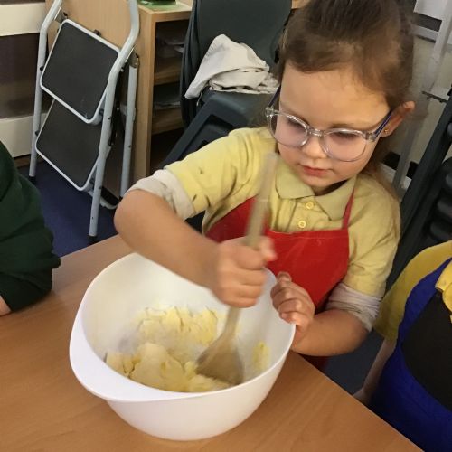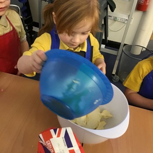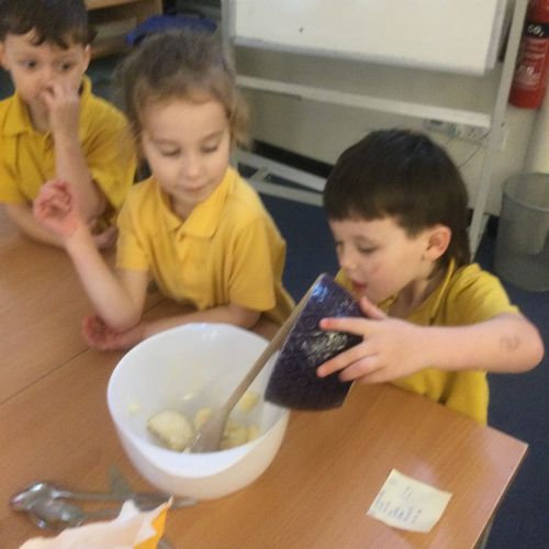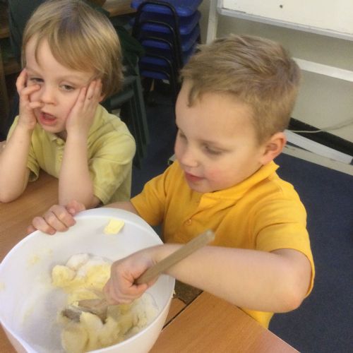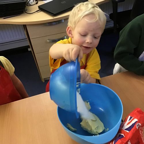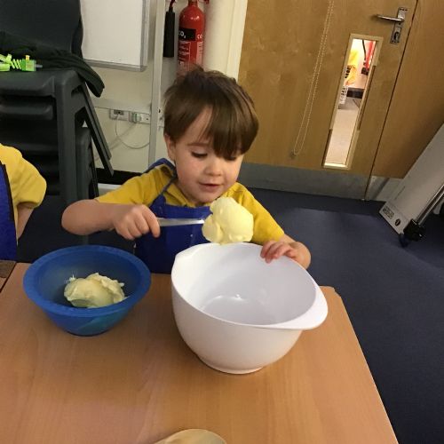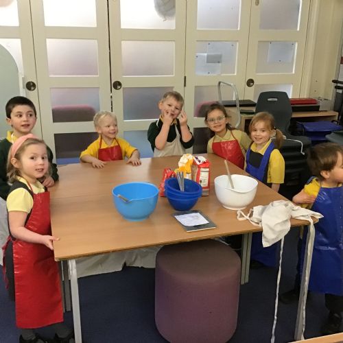 The children in Acorns thoroughly enjoyed cooking with Miss Simpkin. They did this in small groups so that key mathematical language could be used. They talked about full, empty, numbers and shapes.