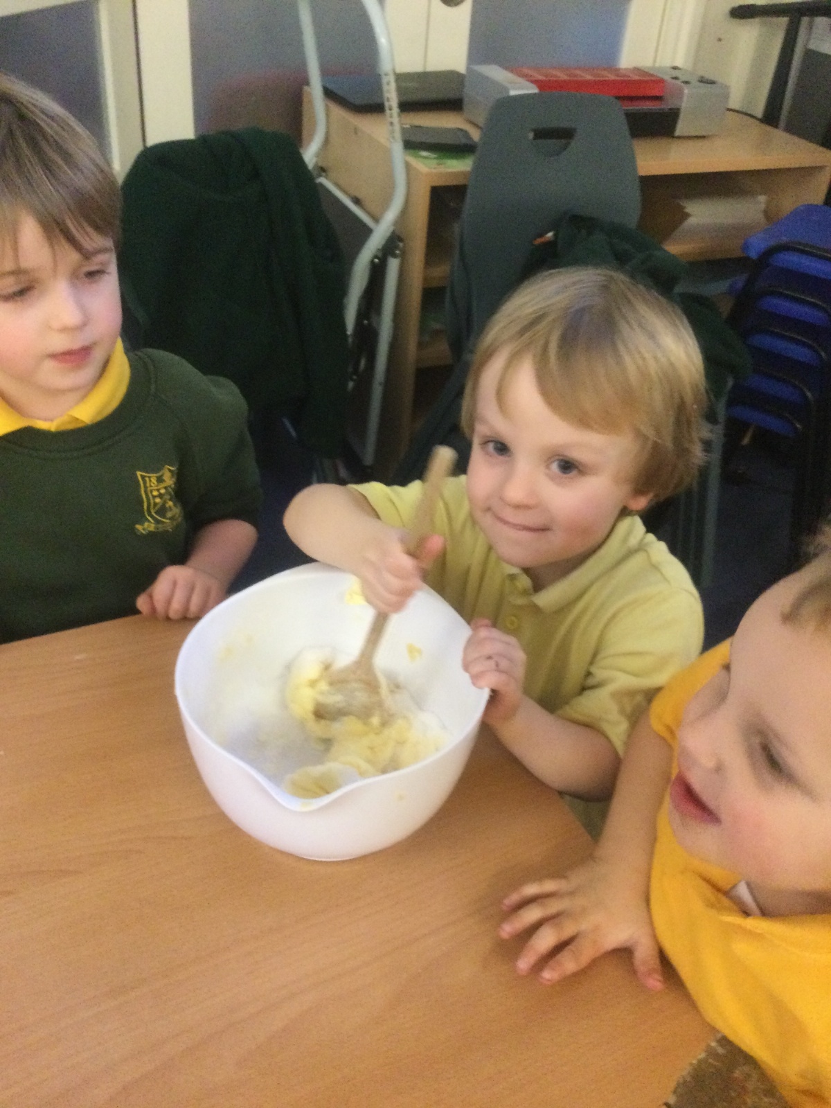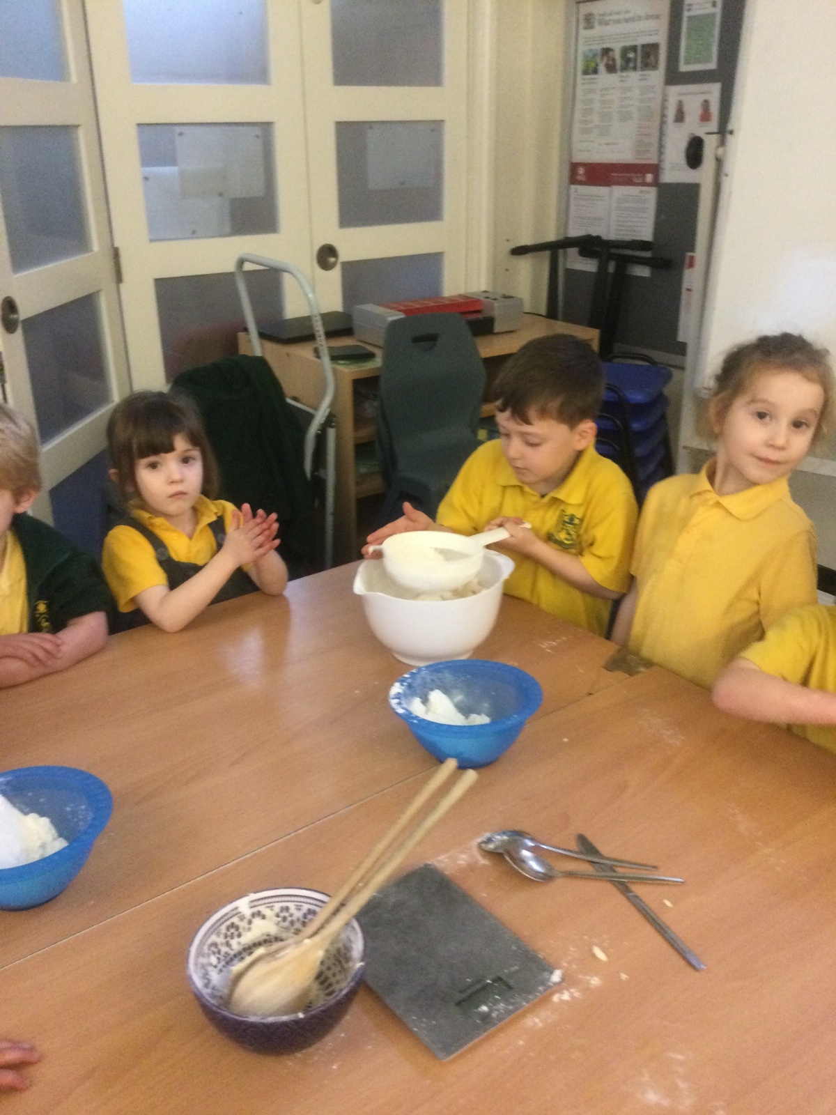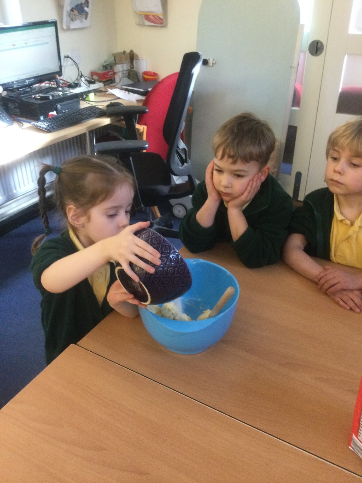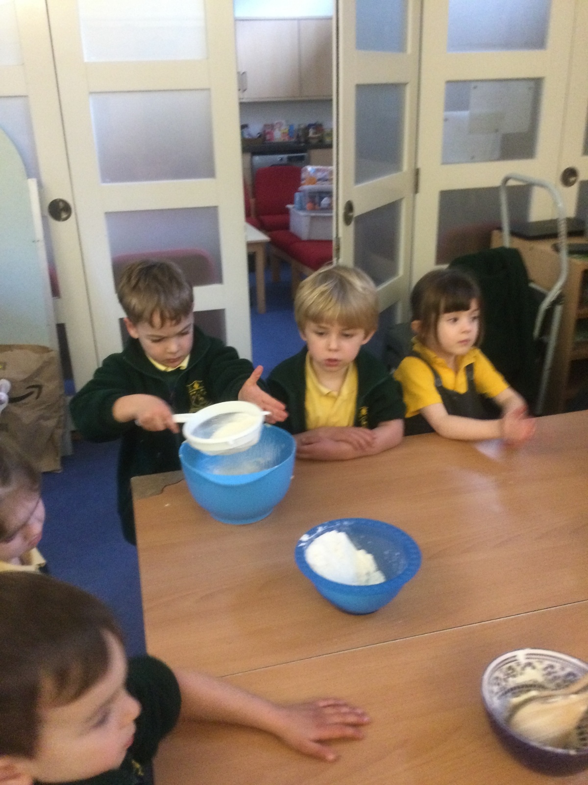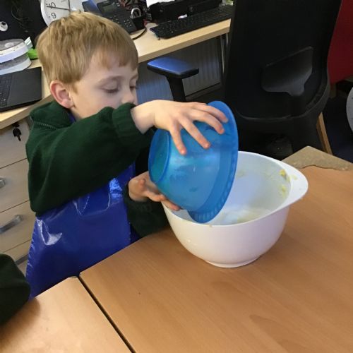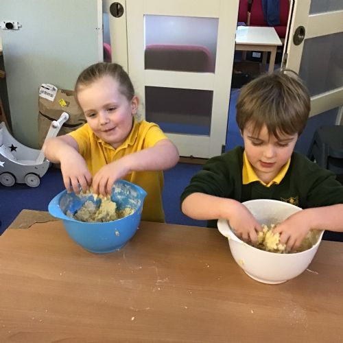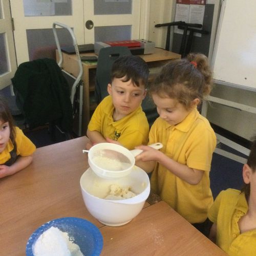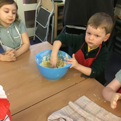 The children in Acorns thoroughly enjoyed cooking with Miss Simpkin. They did this in small groups so that key mathematical language could be used. They talked about full, empty, numbers and shapes.
