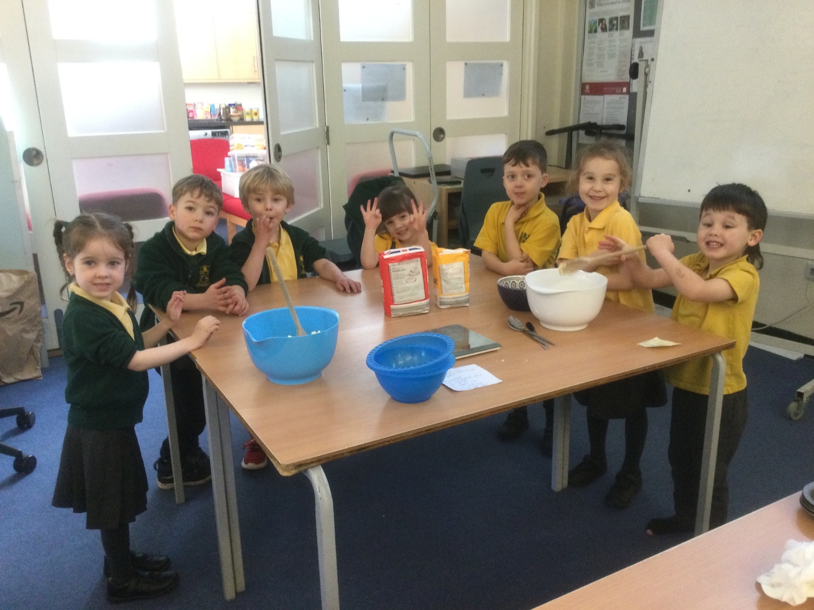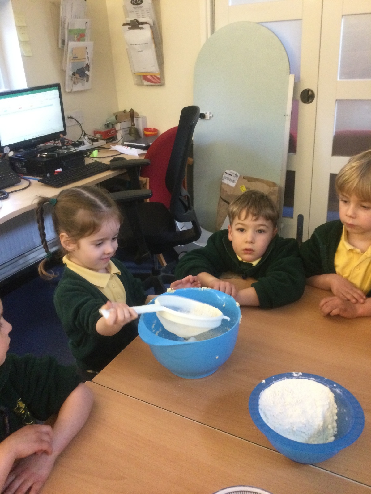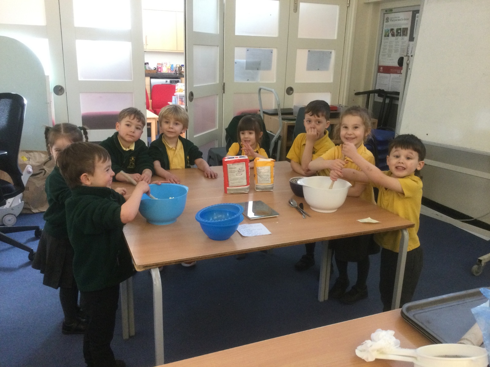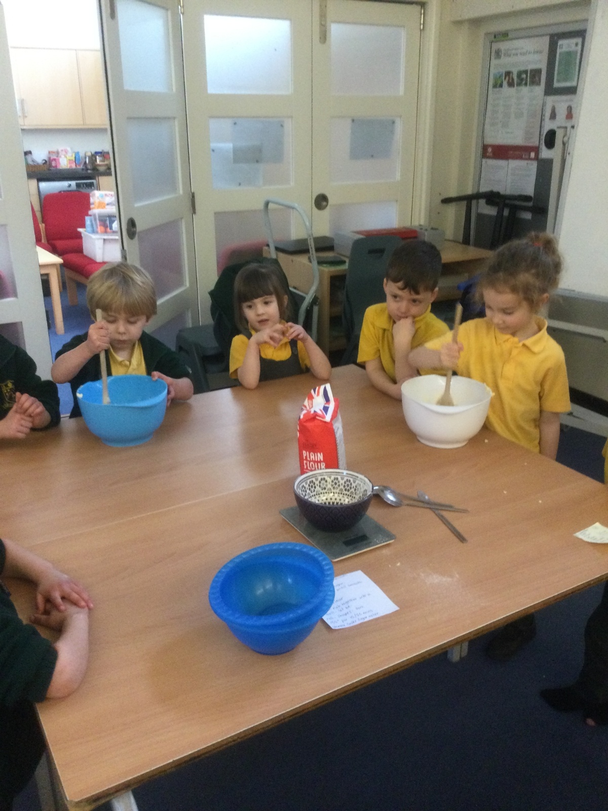 The children in Acorns thoroughly enjoyed cooking with Miss Simpkin. They did this in small groups so that key mathematical language could be used. They talked about full, empty, numbers and shapes.