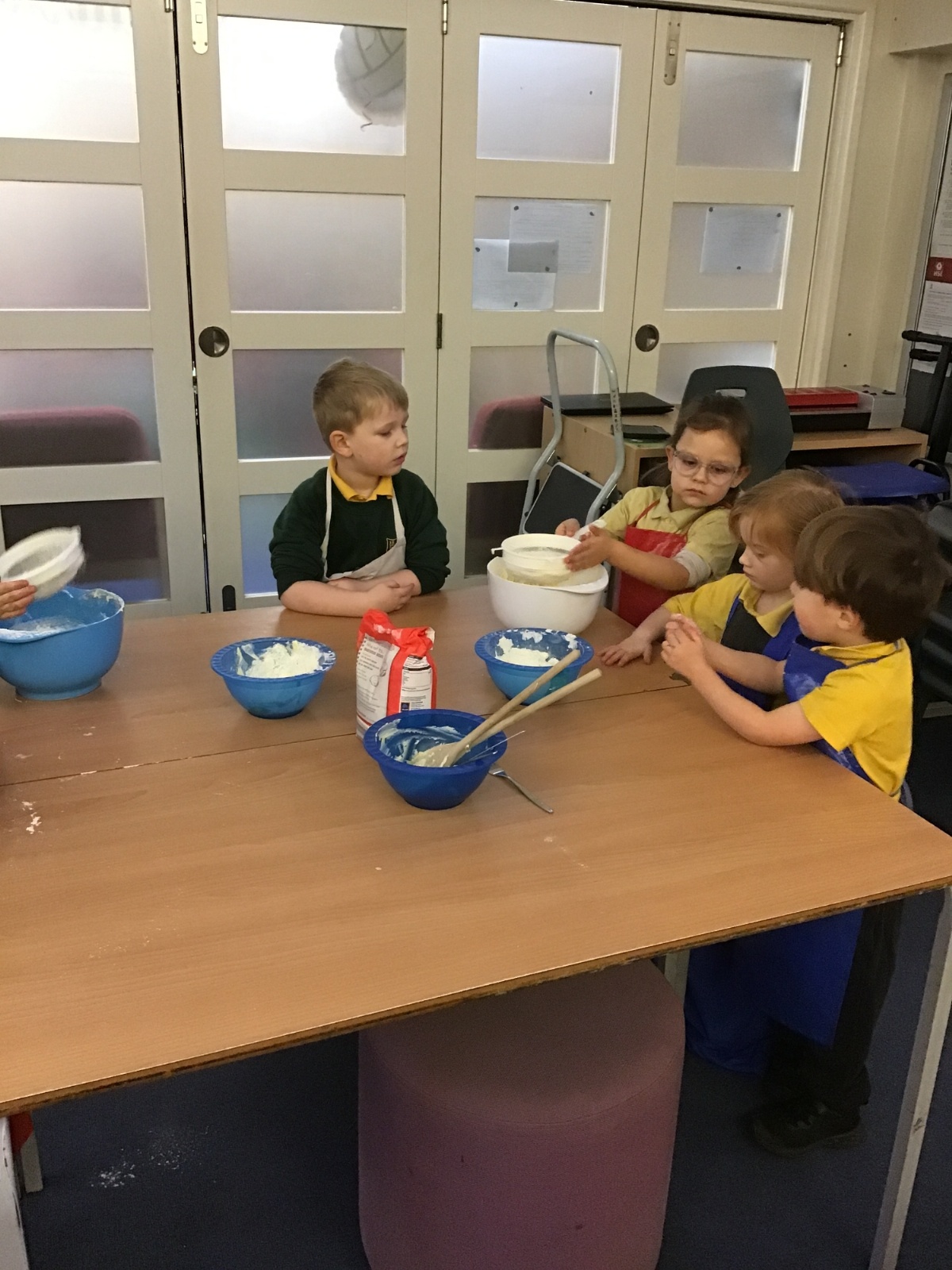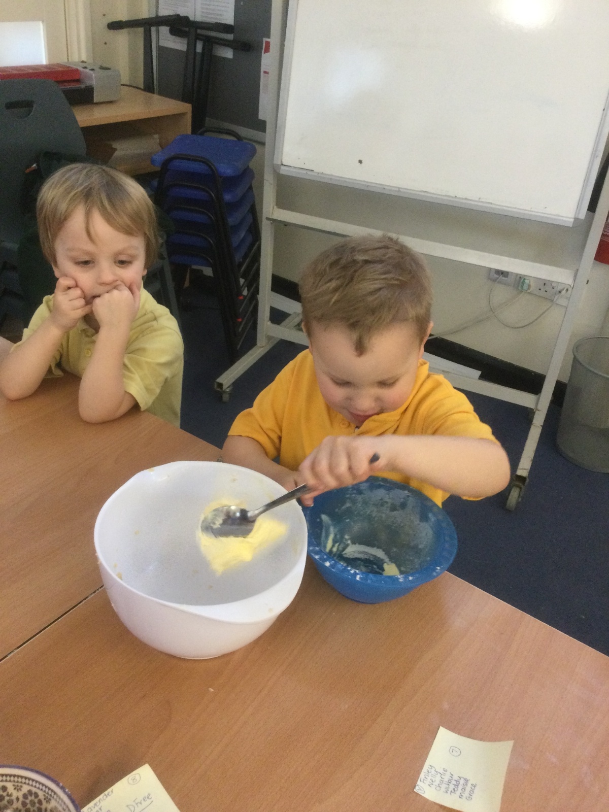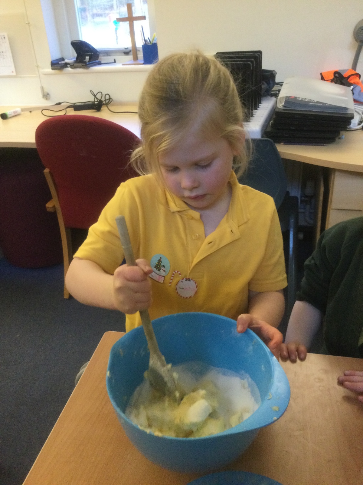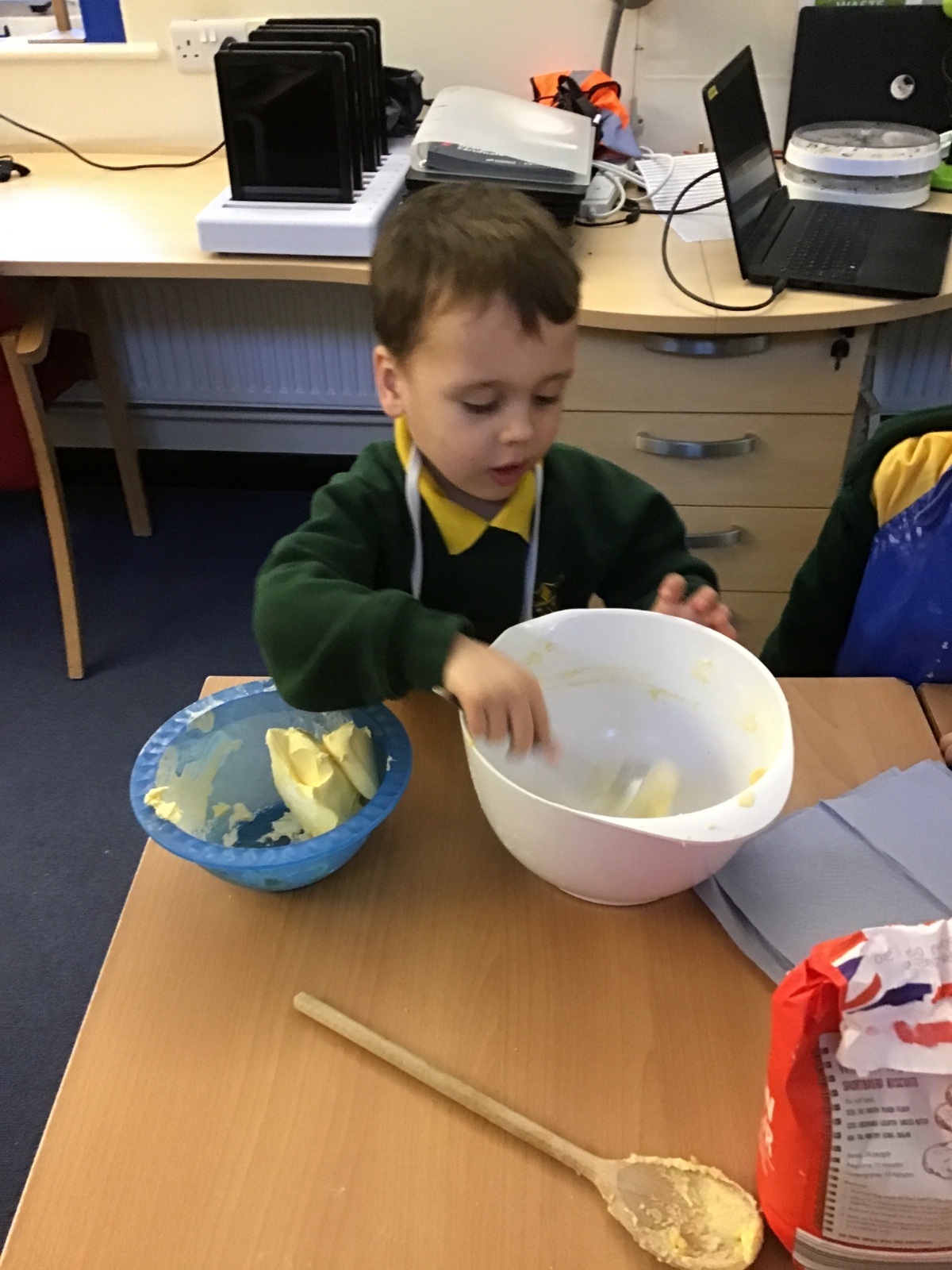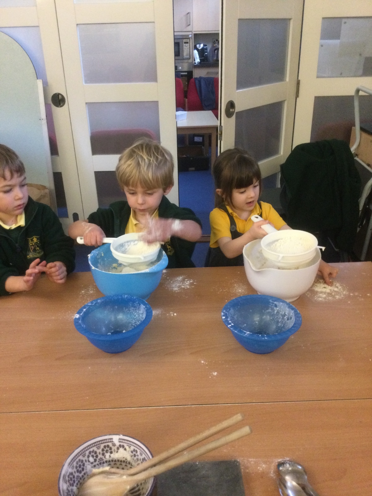 The children in Acorns thoroughly enjoyed cooking with Miss Simpkin. They did this in small groups so that key mathematical language could be used. They talked about full, empty, numbers and shapes.
