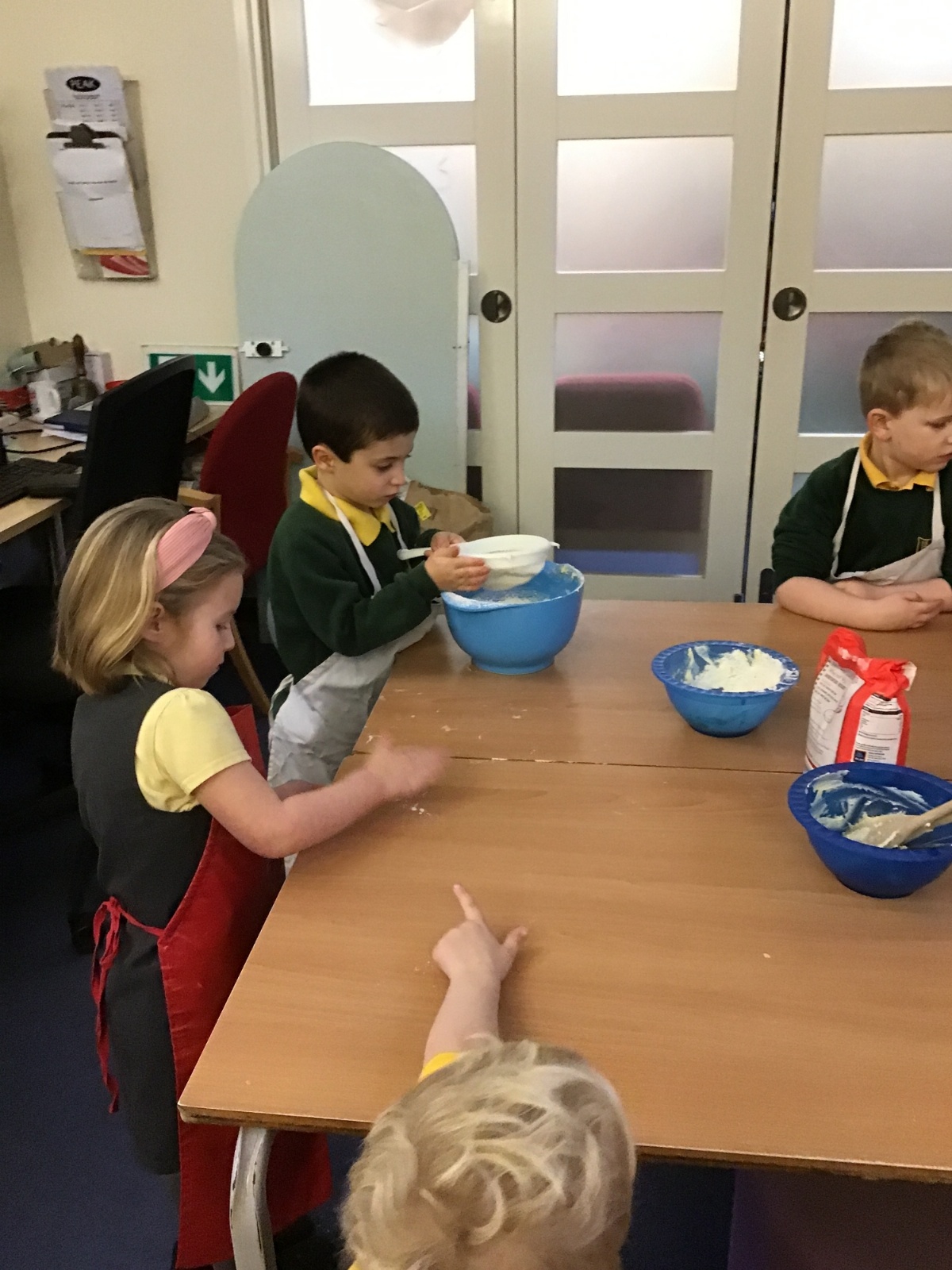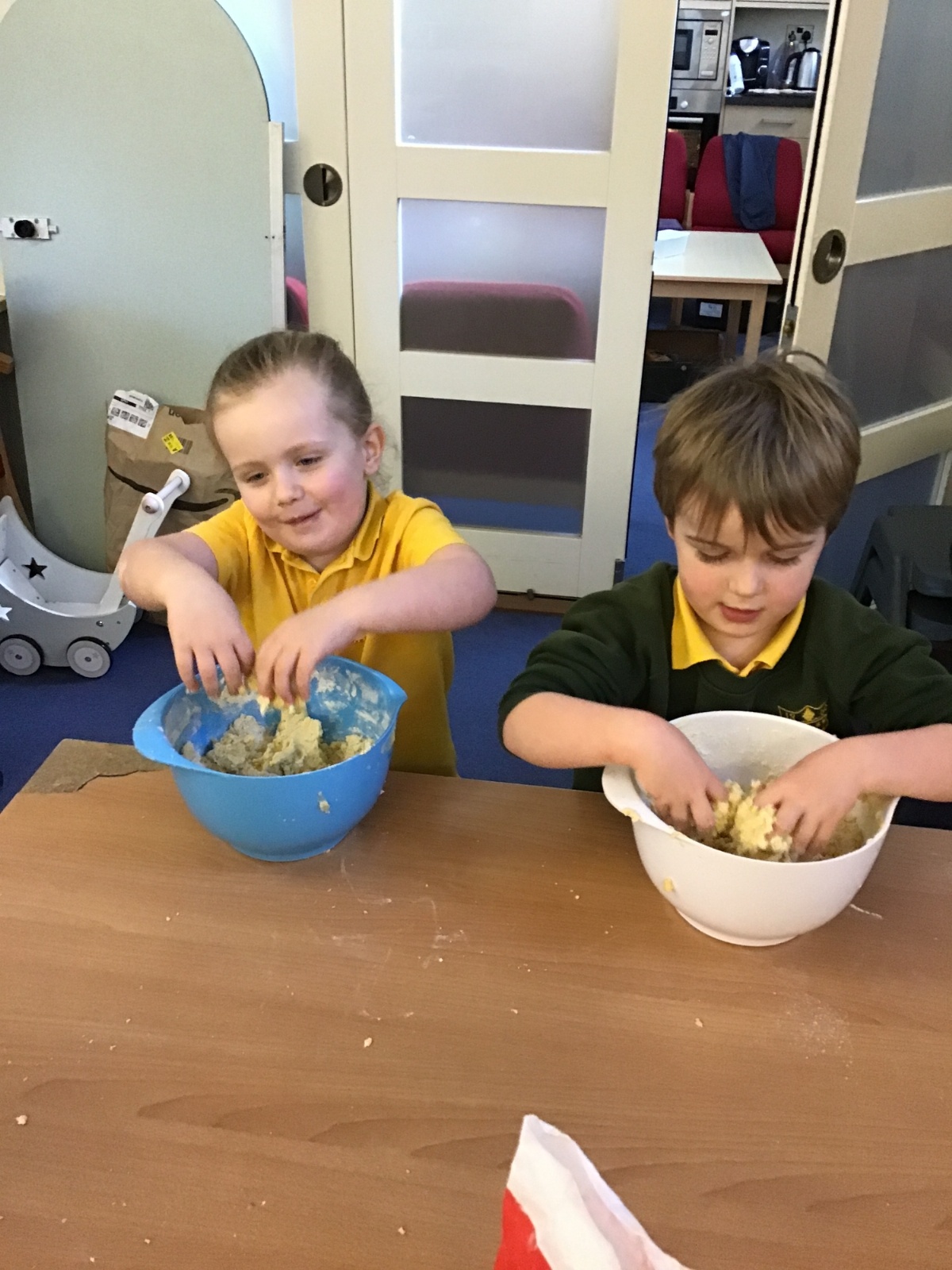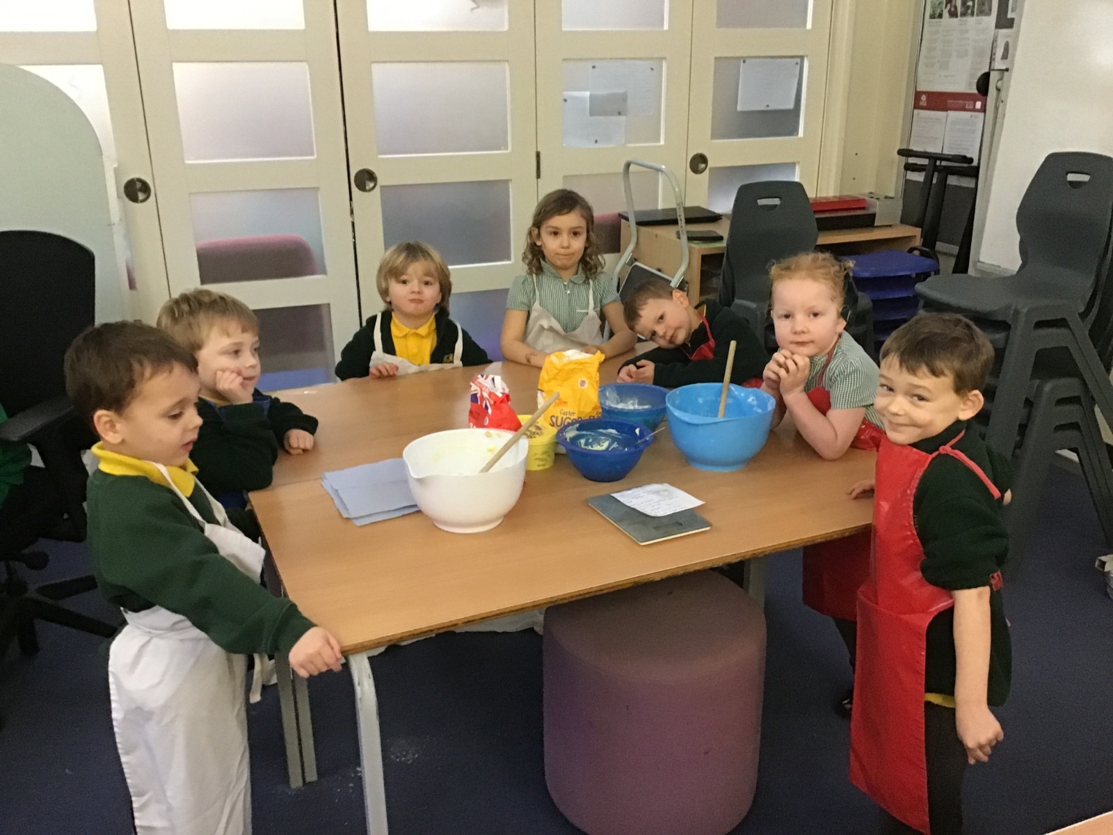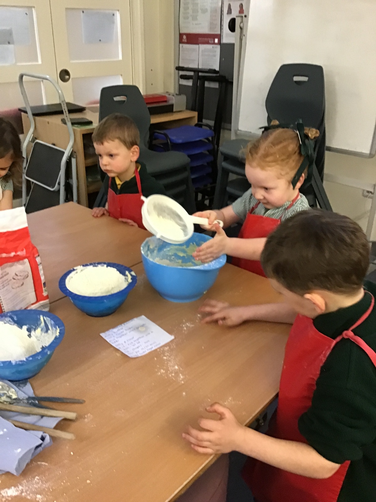 The children in Acorns thoroughly enjoyed cooking with Miss Simpkin. They did this in small groups so that key mathematical language could be used. They talked about full, empty, numbers and shapes.